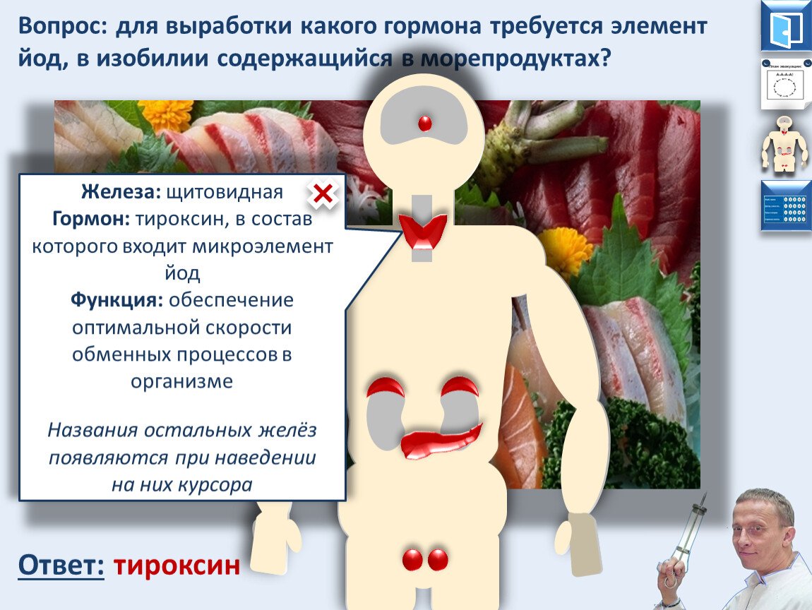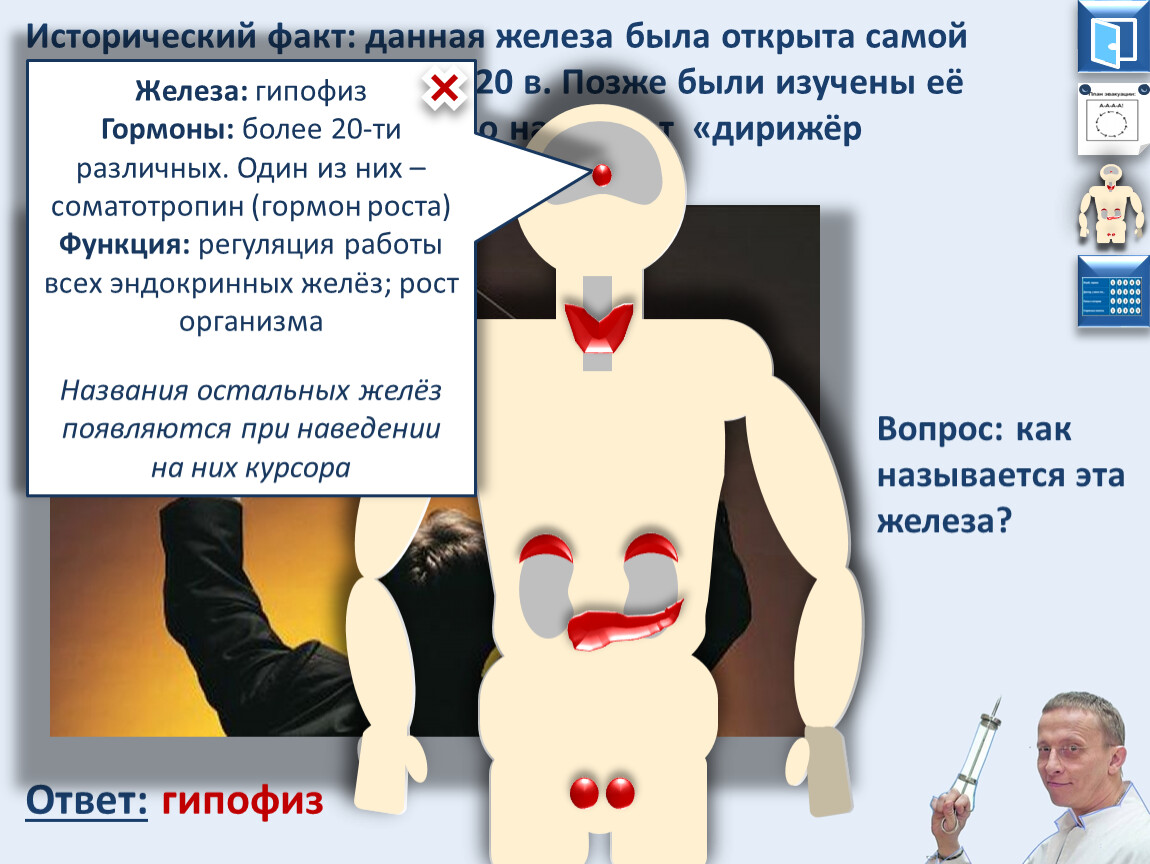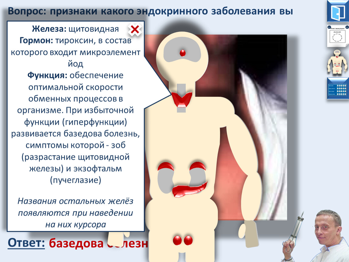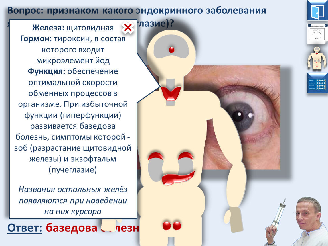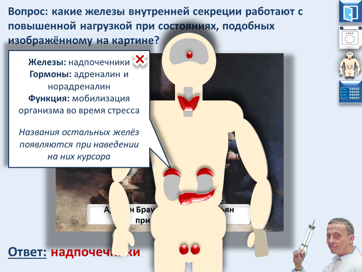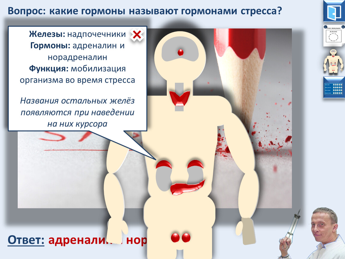 Кнопка позволяет получить более подробную информацию о тех эндокринных железах, которым посвящен вопрос.