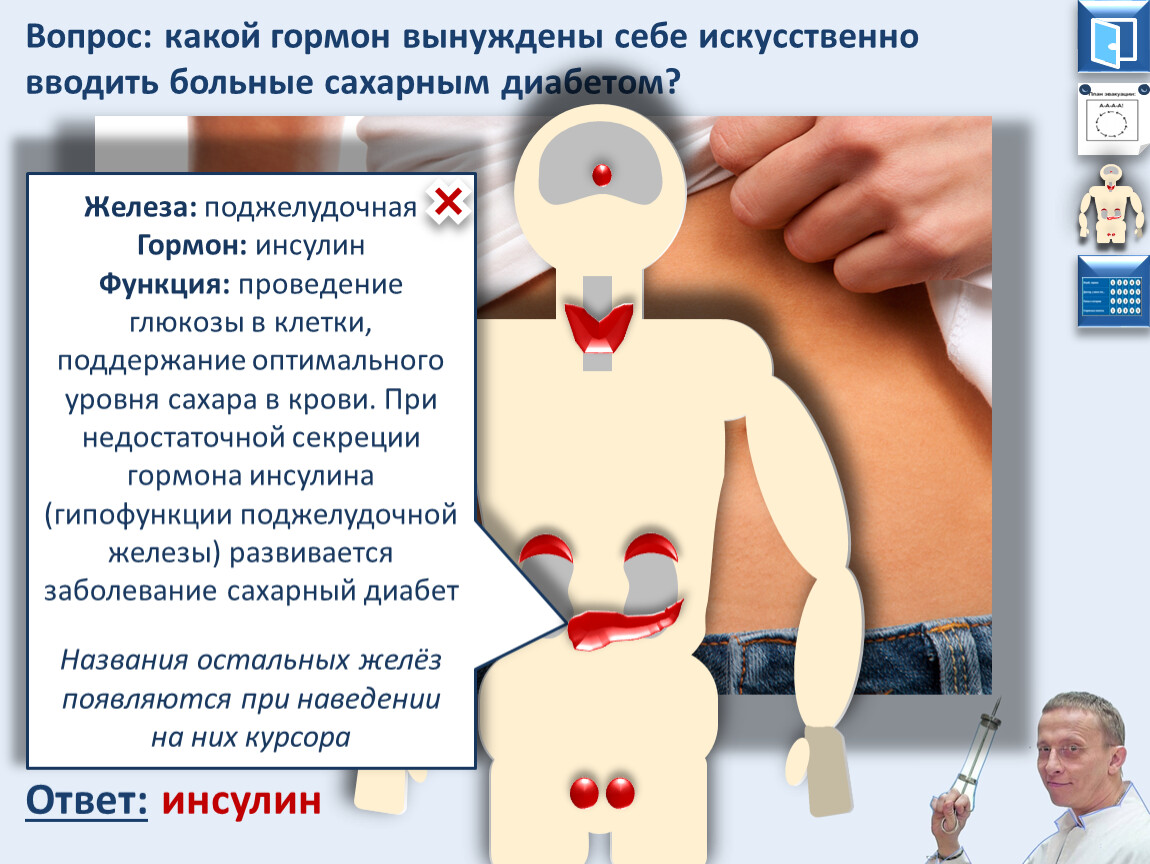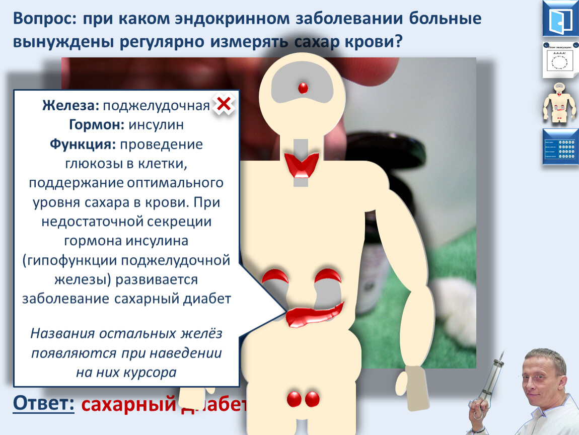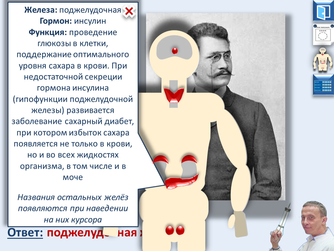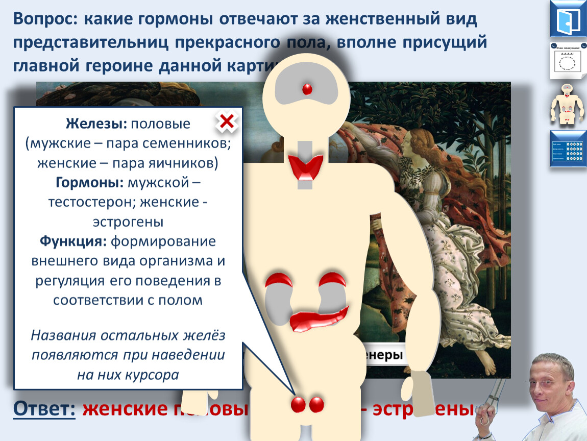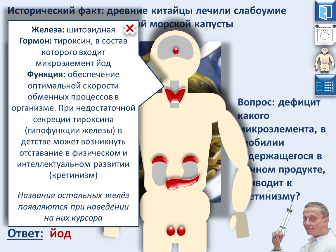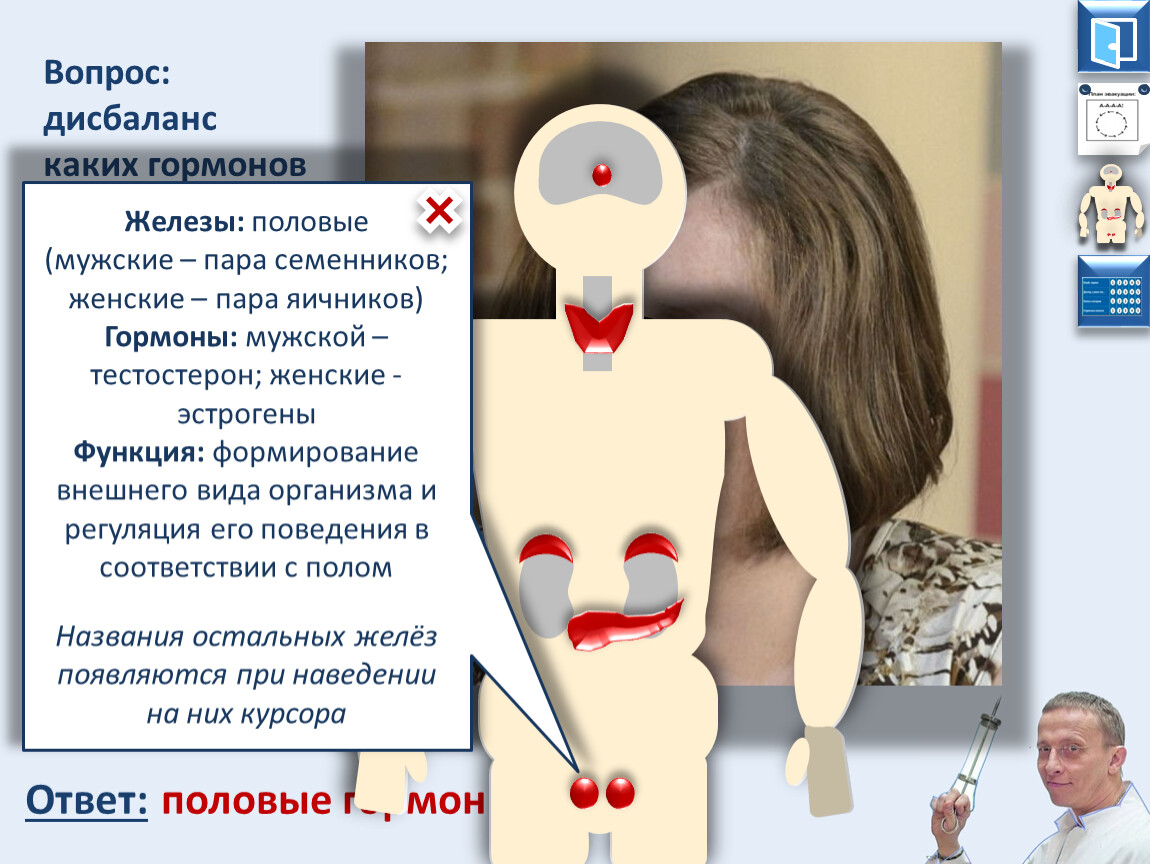 Кнопка позволяет получить более подробную информацию о тех эндокринных железах, которым посвящен вопрос.