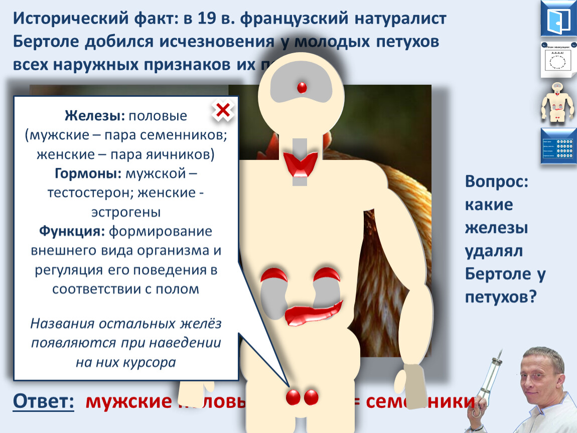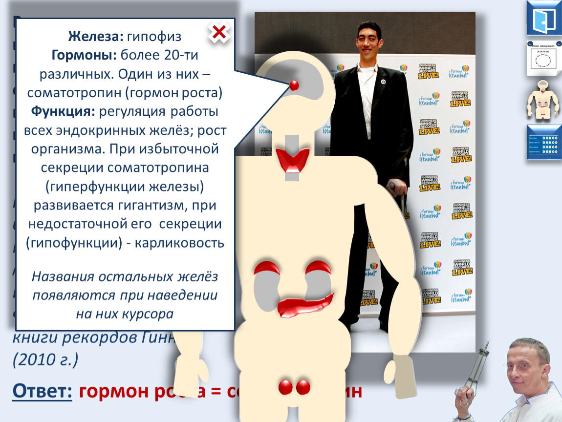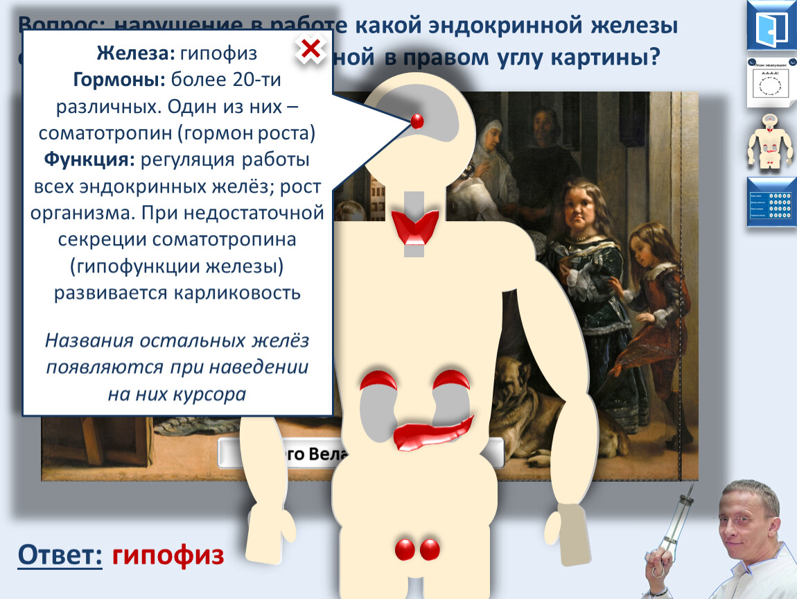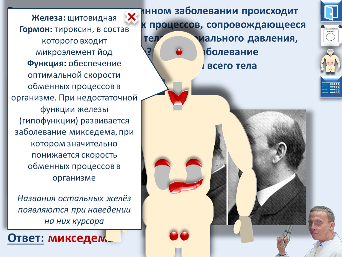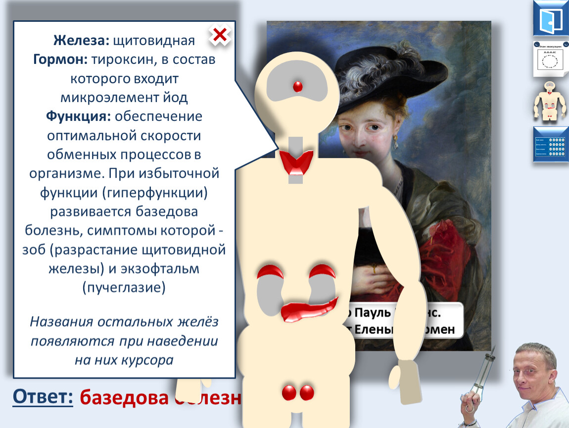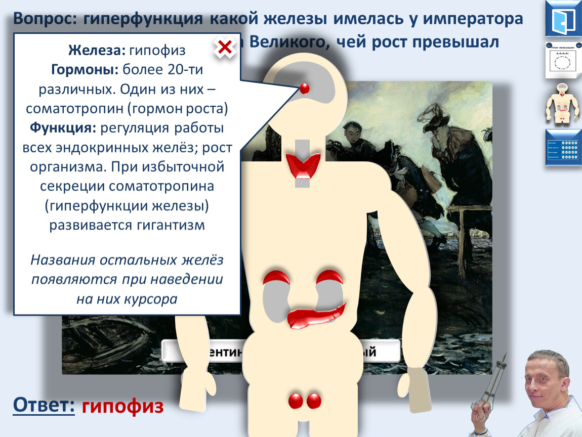 Кнопка позволяет получить более подробную информацию о тех эндокринных железах, которым посвящен вопрос.
