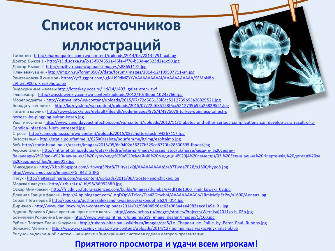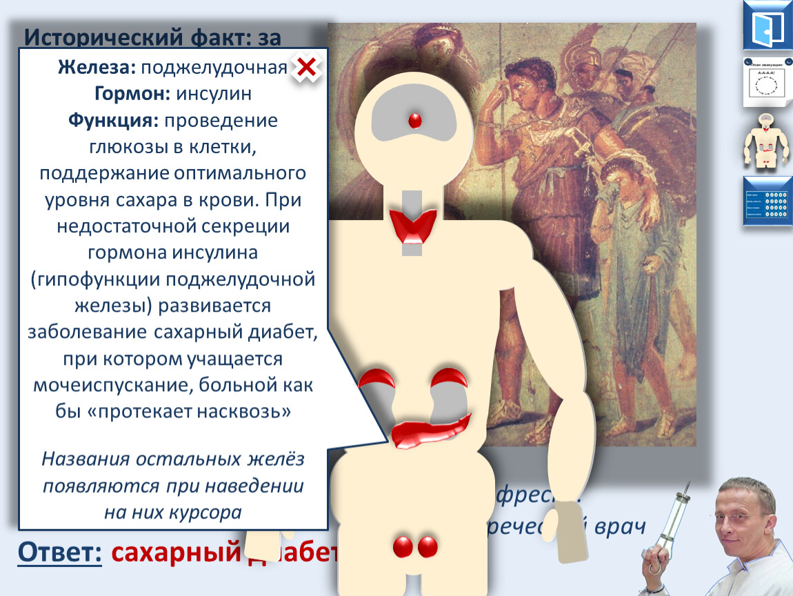 Рисунок эндокринной системы на кнопке «Эндокринная система» сделан автором презентации