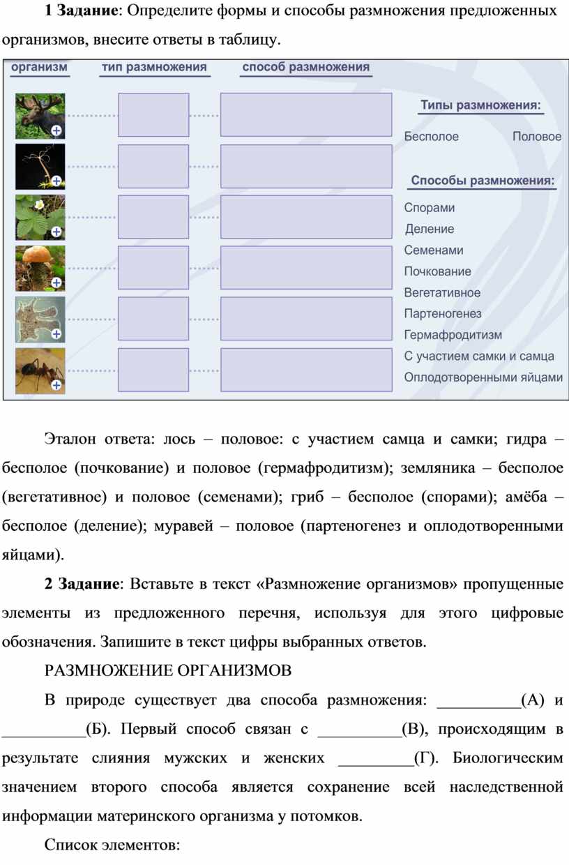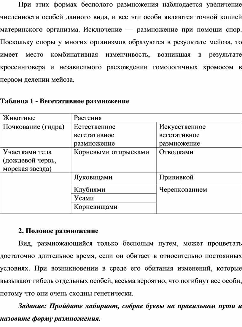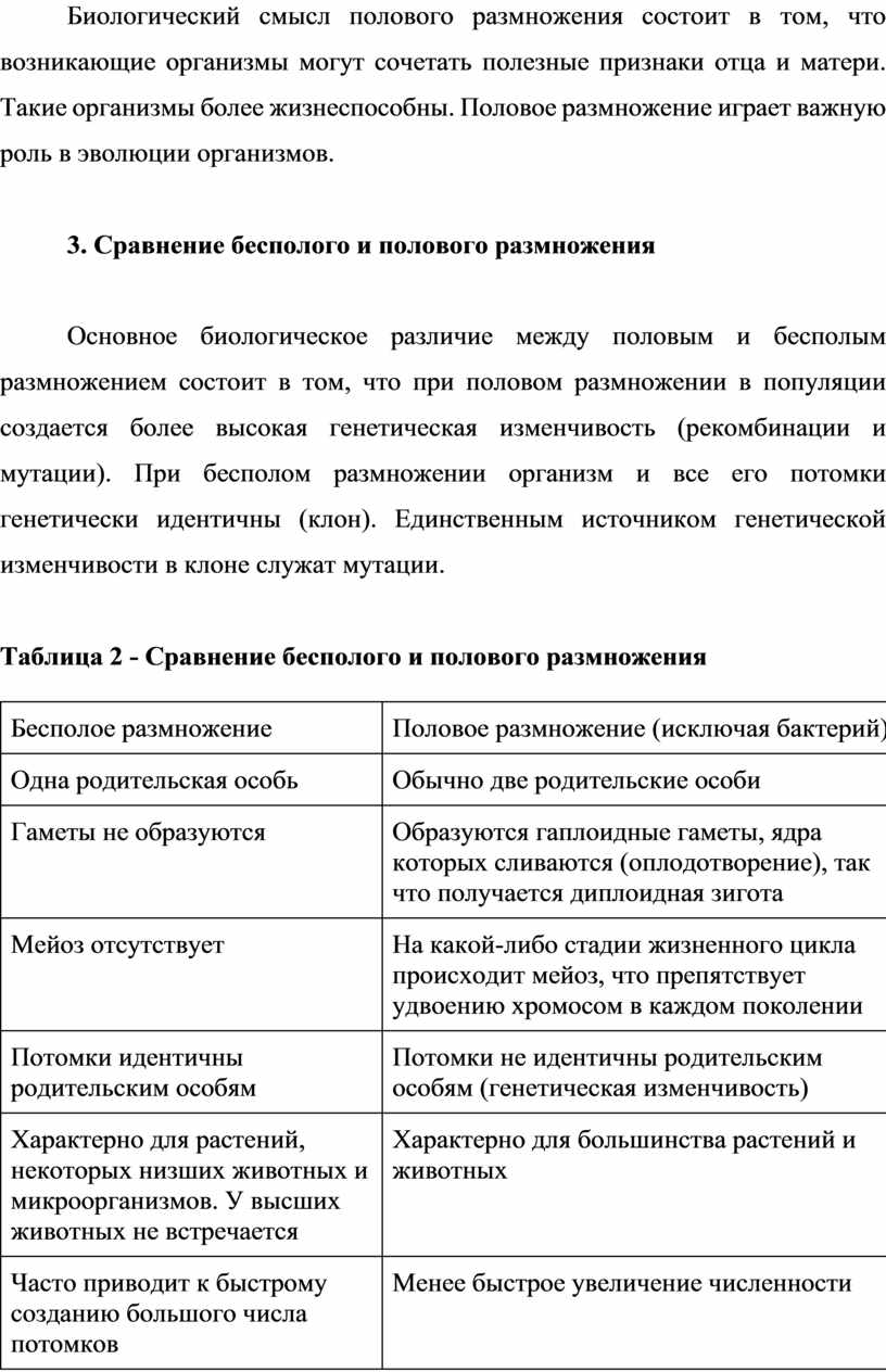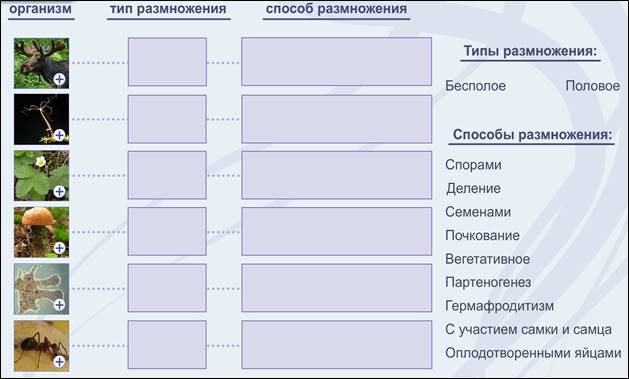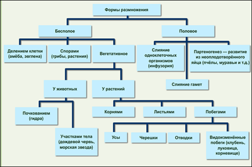 уметь: приводить примеры бесполого и полового размножения.