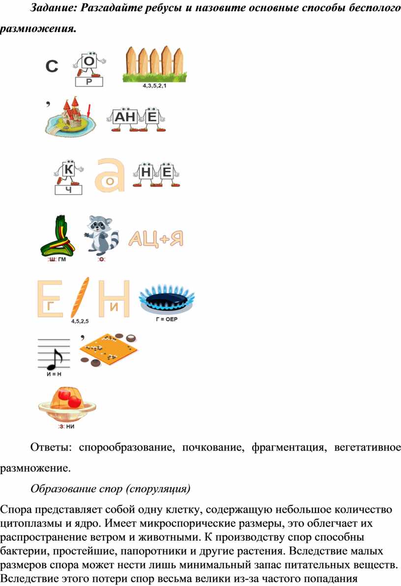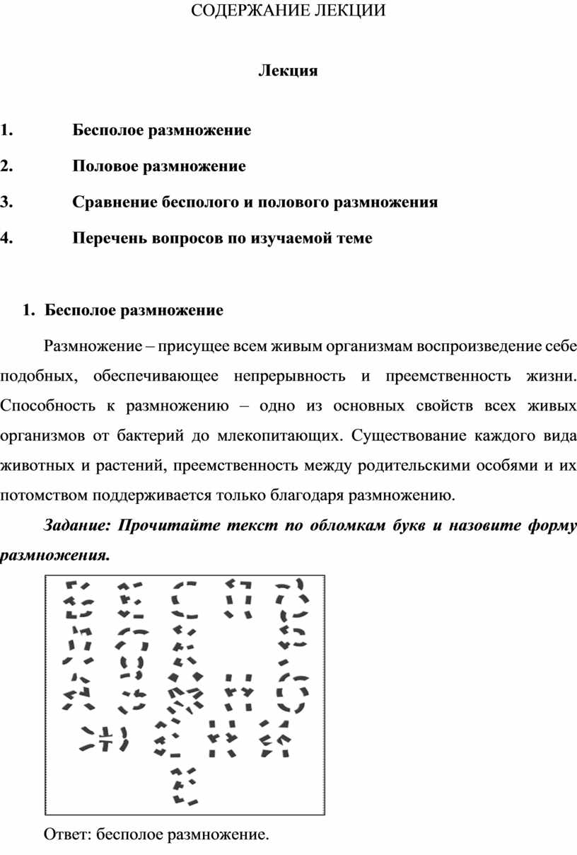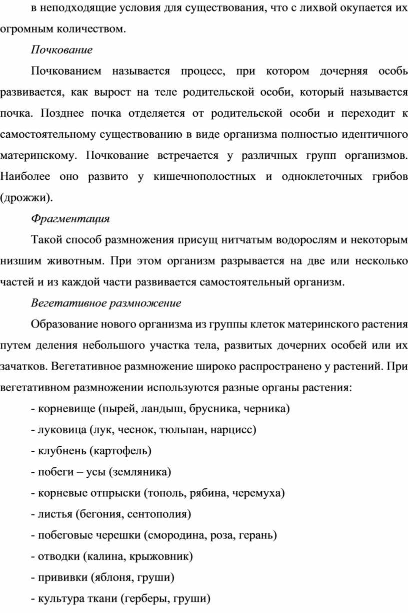 уметь: приводить примеры бесполого и полового размножения.