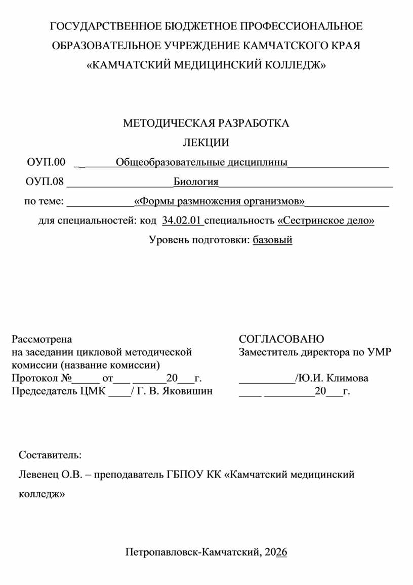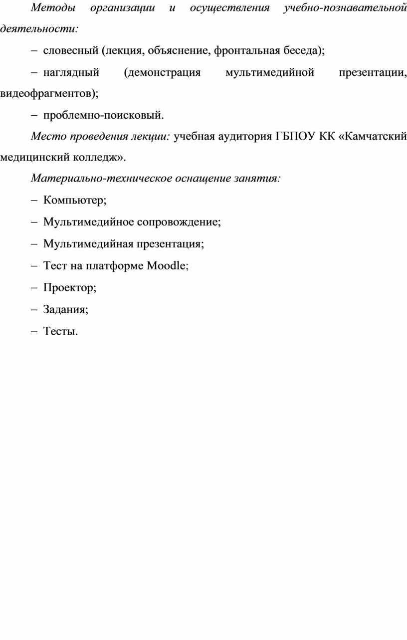 Место проведения лекции: учебная аудитория ГБПОУ КК «Камчатский медицинский колледж».