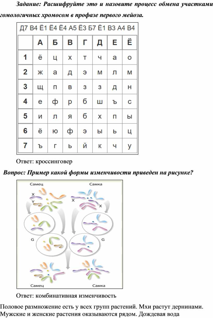 г) перекрёст и обмен участками хромосом