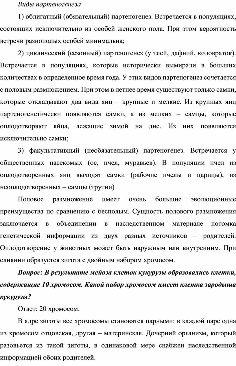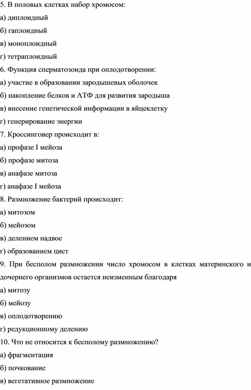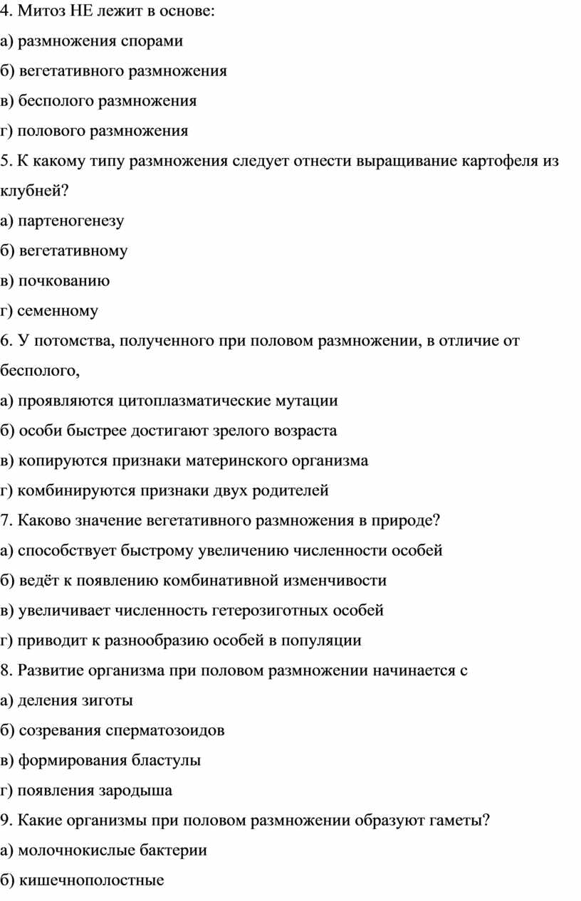 9. При бесполом размножении число хромосом в клетках материнского и дочернего организмов остается неизменным благодаря