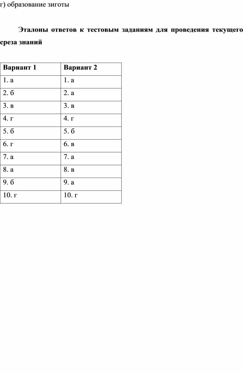 Эталоны ответов к тестовым заданиям для проведения текущего среза знаний