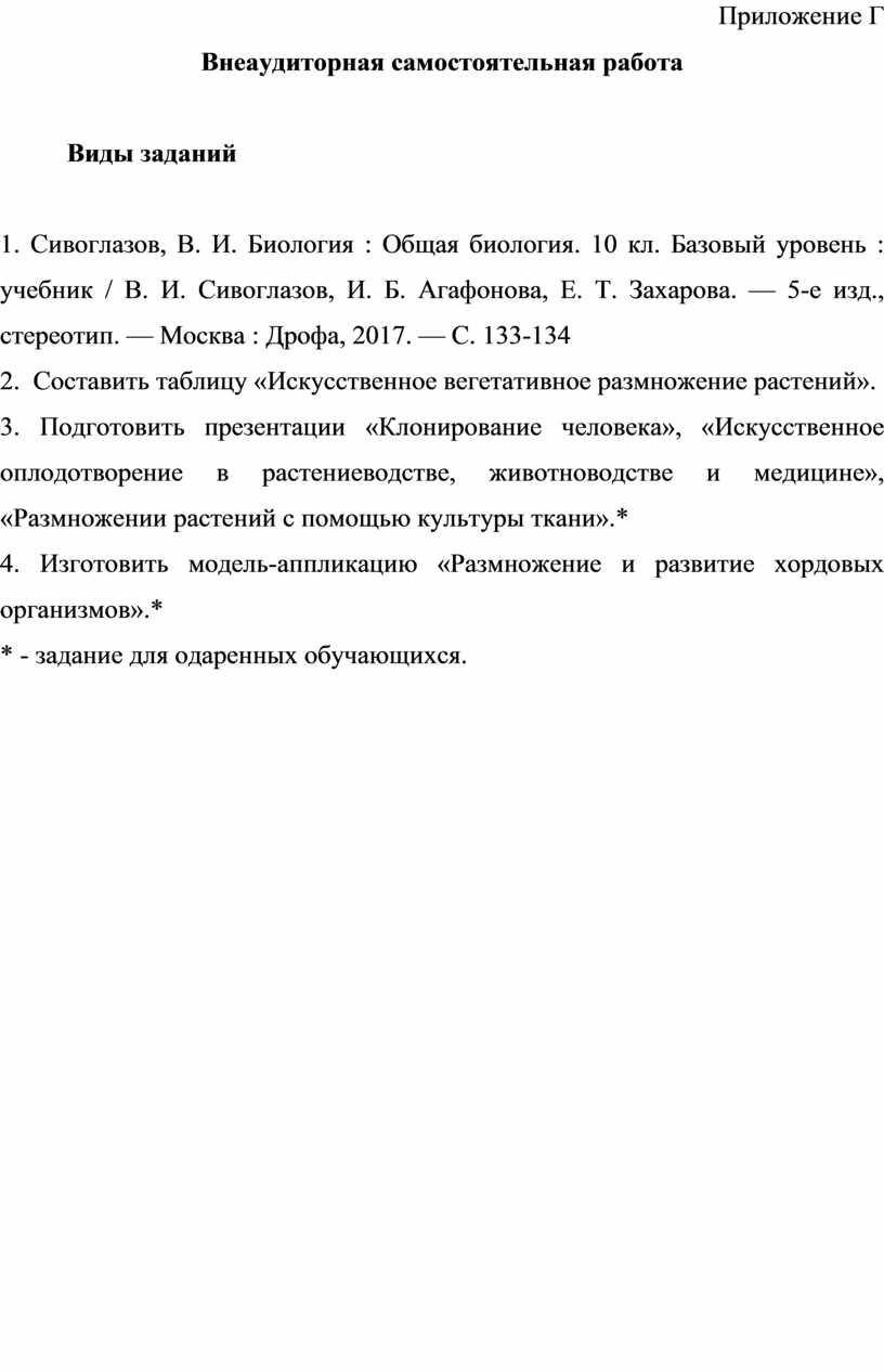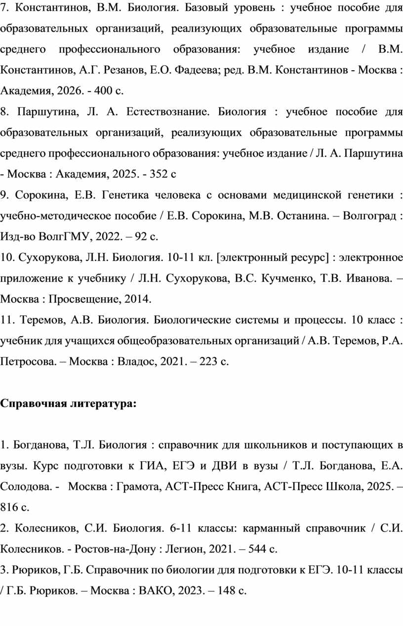 1. Сивоглазов, В. И. Биология : Общая биология. 10 кл. Базовый уровень : учебник / В. И. Сивоглазов, И. Б. Агафонова, Е. Т. Захарова. — 5-е изд., стереотип. — Москва : Дрофа, 2017. — С. 133-134