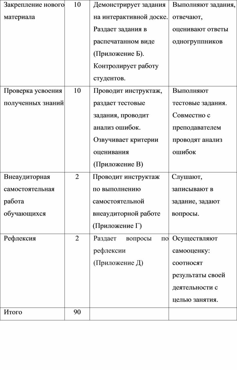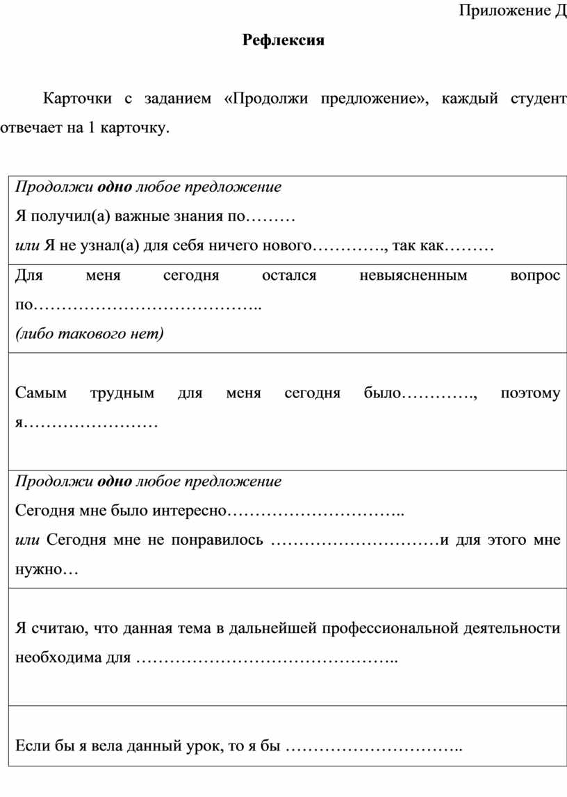 Приложение В. Текущий срез знаний ………………………………….. Приложение Г. Внеаудиторная самостоятельная работа ……………... Приложение Д. Рефлексия ……………………………………………….