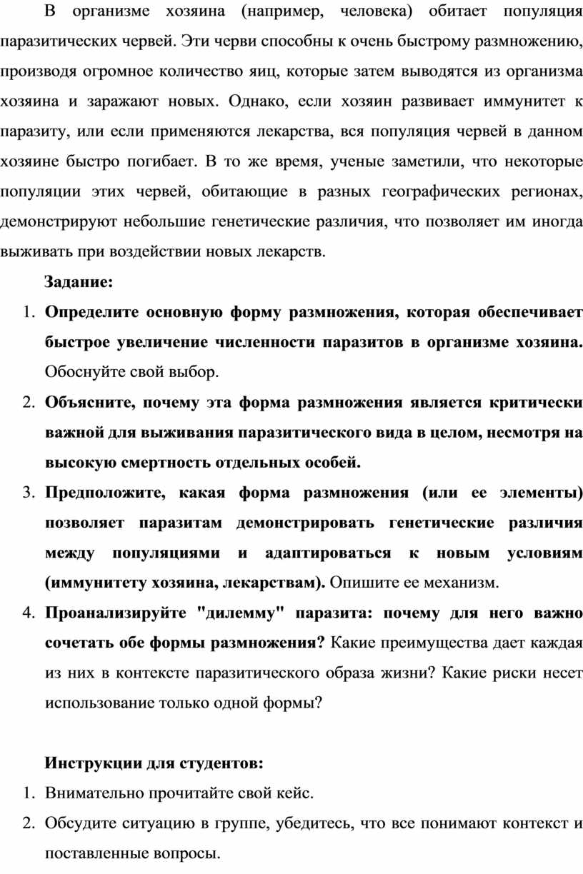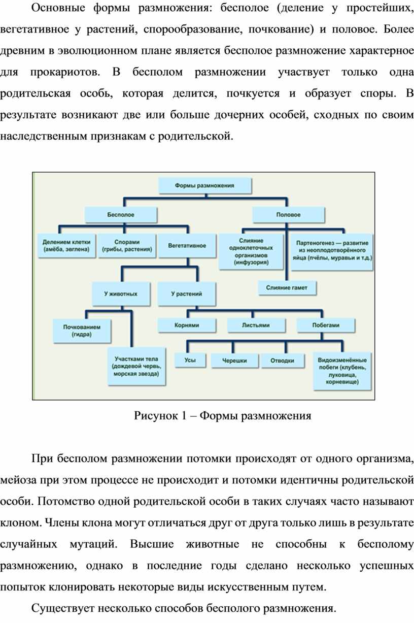 Формы размножения (бесполое, половое, их варианты) объясняют, как организмы сохраняются и продолжают существование вида, приспосабливаются к изменениям среды. Половое размножение — ключ к появлению новых комбинаций генов, что лежит в основе эволюции и адаптаций. Бесполое — к быстрому расселению и захвату среды.