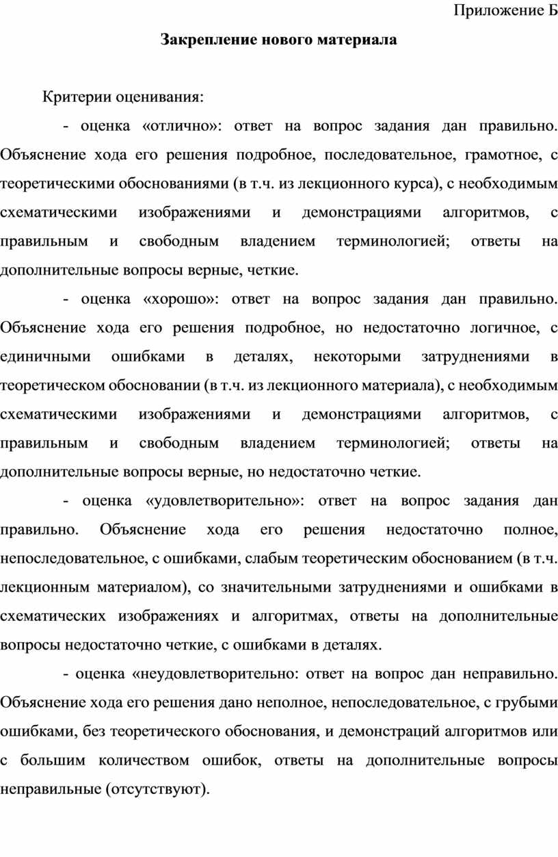 Приложение Б. Закрепление нового материала ……………………….. |