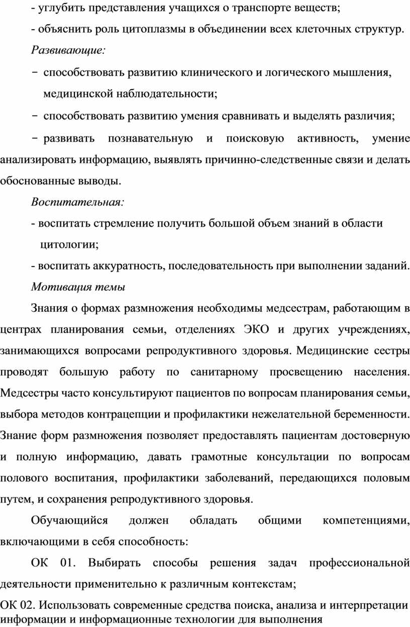 ОК 01. Выбирать способы решения задач профессиональной деятельности применительно к различным контекстам;