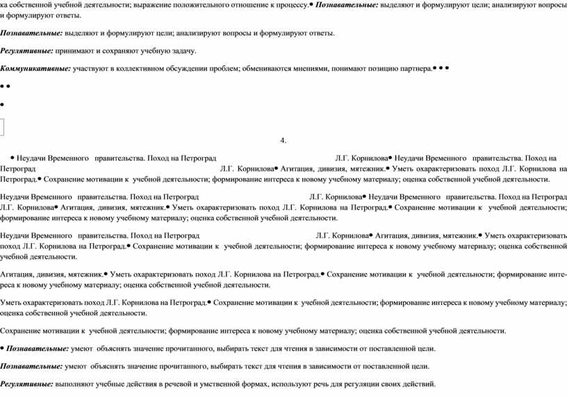 Уметь охарактеризовать поход Л.Г. Корнилова на Петроград. |