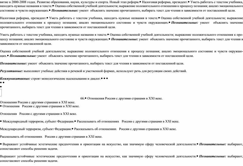 Первые реформы В.В. Путина. Экономическое и социальное развитие в 2000-2008 годах. Развитие образования, науки, культуры и спорта. Новый этап реформ. |