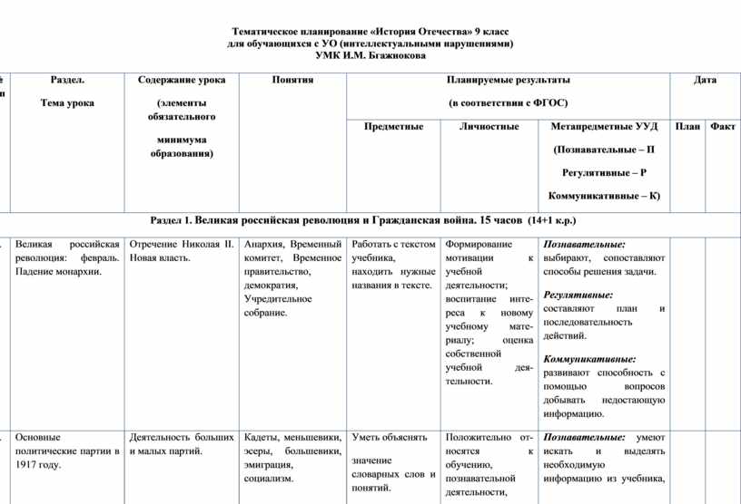 Раздел 1. Великая российская революция и Гражданская война. 15 часов (14+1 к.р.) |