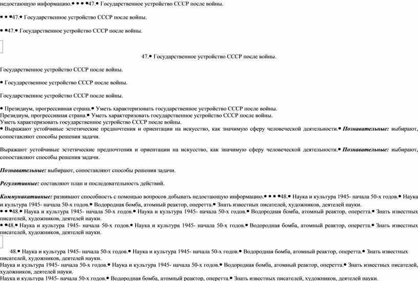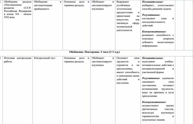 Обобщение раздела «Послевоенное развитие СССР. Российская Федерация в конце ХХ – начале ХХI века. |