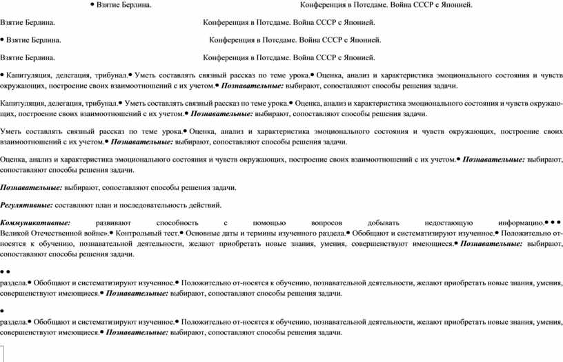 Взятие Берлина. Конференция в Потсдаме. Война СССР с Японией.