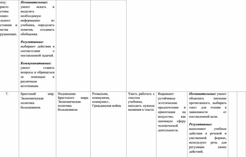 Познавательные: выполняют учебно-познавательные действия в материализованной и умственной форме. Регулятивные: адекватно оценивают свои достижения, осознают возникающие трудности, ищут их причины и пути преодоления. Коммуникативные: осуществляют анализ прочитанных текстов, используя изученную терминологию и полученные знания. |