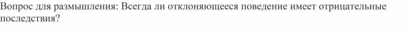 Вопрос для размышления: Всегда ли отклоняющееся поведение имеет отрицательные последствия?