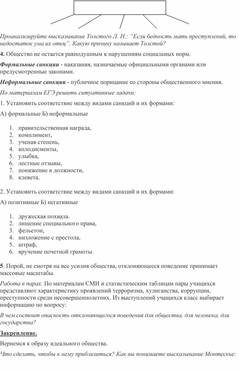 Методическая разработка по теме «Социальные нормы и отклоняющееся поведение». 10 класс.