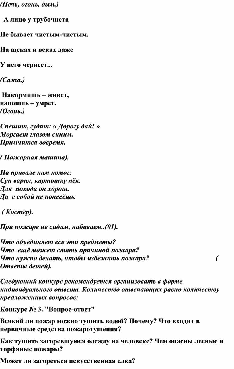 Следующий конкурс рекомендуется организовать в форме индивидуального ответа. Количество отвечающих равно количеству предложенных вопросов: