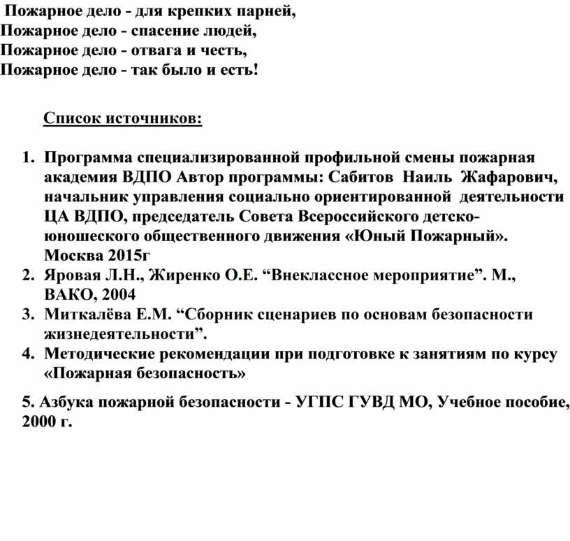 3. Миткалёва Е.М. “Сборник сценариев по основам безопасности жизнедеятельности”.
