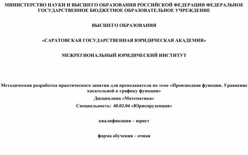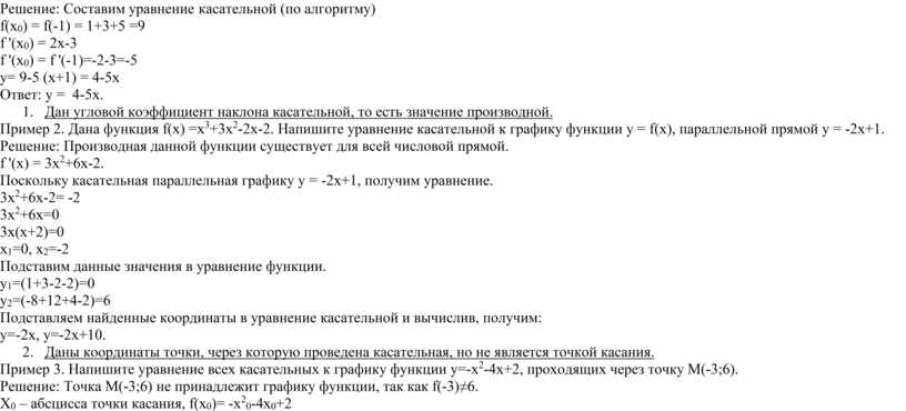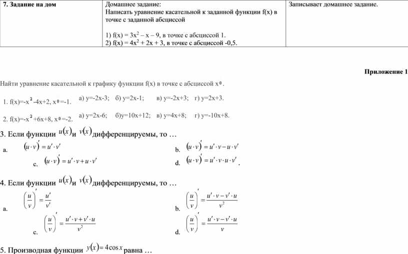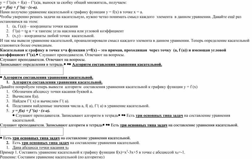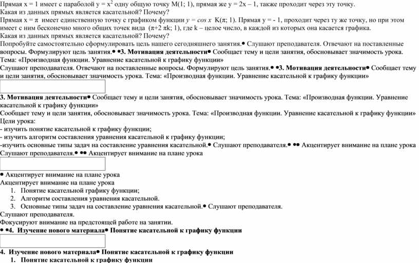 Методическая разработка практического занятия для преподавателя по теме «Производная функции. Уравнение касательной к графику функции»