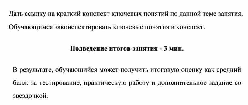Дать ссылку на краткий конспект ключевых понятий по данной теме занятия.
