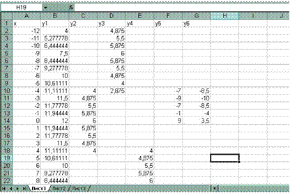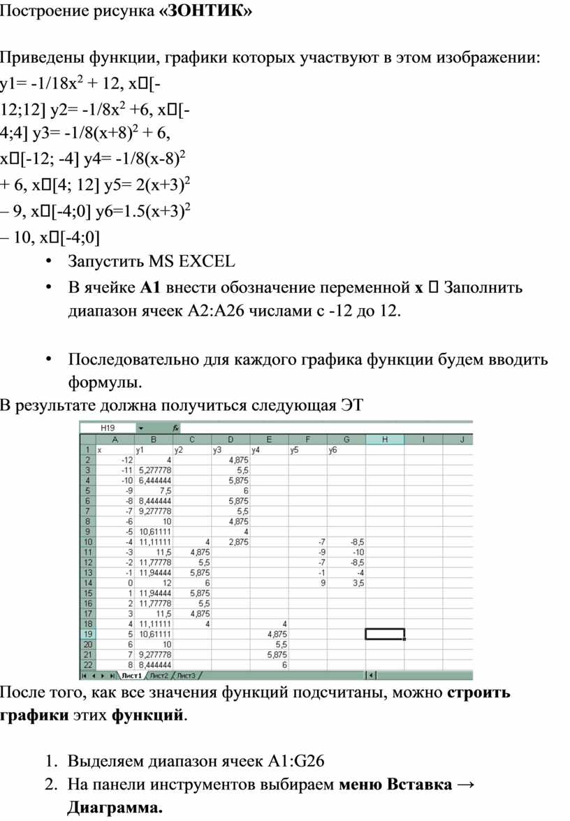 • В ячейке А1 внести обозначение переменной х Заполнить диапазон ячеек А2:А26 числами с -12 до 12.