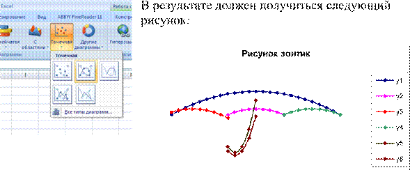3. В окне Мастера диаграмм выберите Точечная → Выбрать нужный вид→ Нажать Ok.