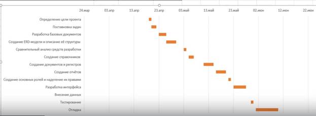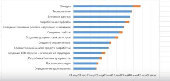 Теперь на диаграмме кроме дат начала работ отображается длительность каждой