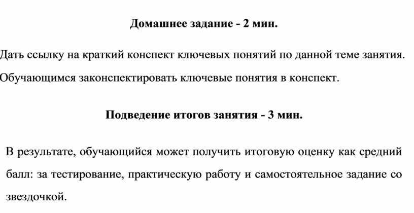 Дать ссылку на краткий конспект ключевых понятий по данной теме занятия.