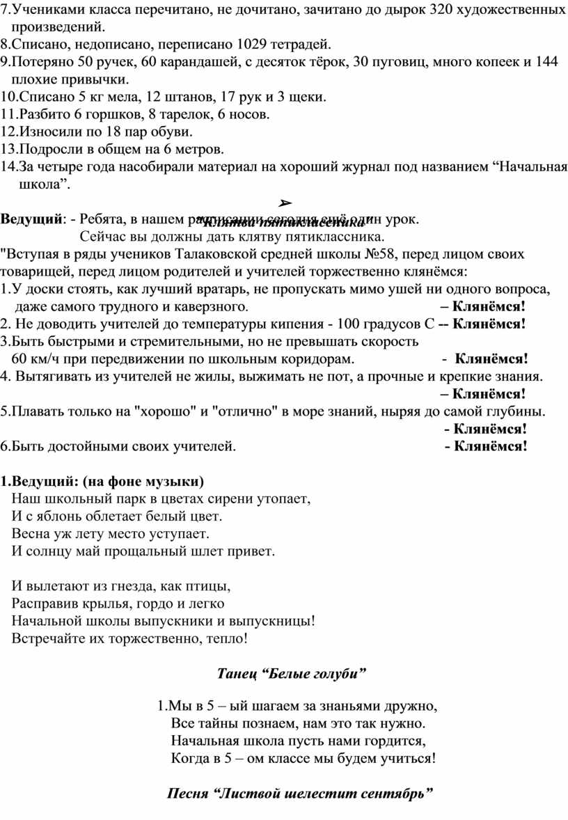 "Вступая в ряды учеников Талаковской средней школы №58, перед лицом своих товарищей, перед лицом родителей и учителей торжественно клянёмся: