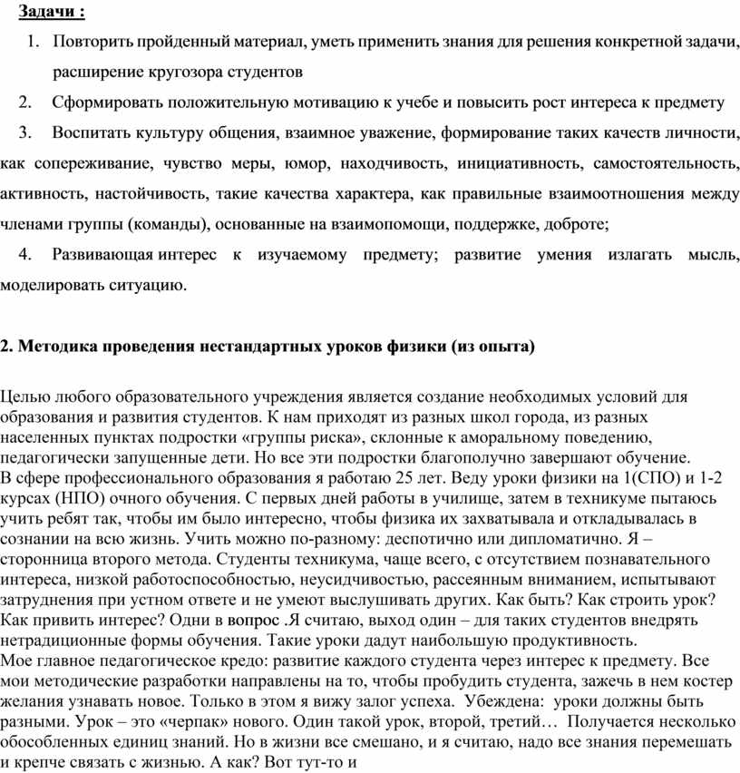 2. Методика проведения нестандартных уроков физики (из опыта)