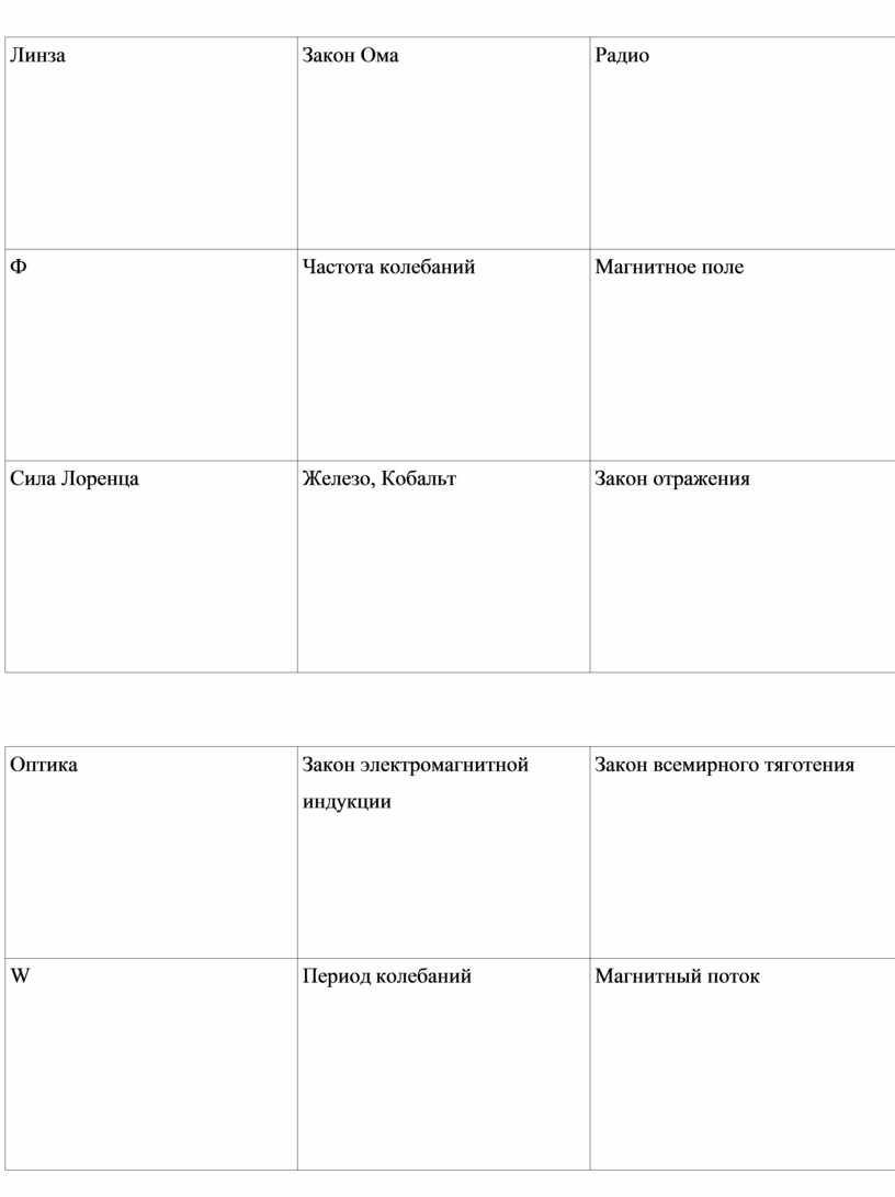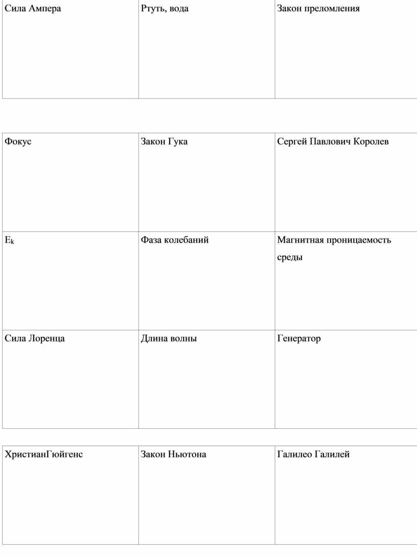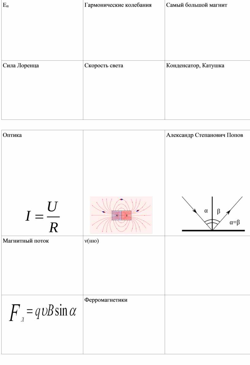 Ответы: электрический ток, магнитное поле, генератор, линза, радио, радар, эхо, железо