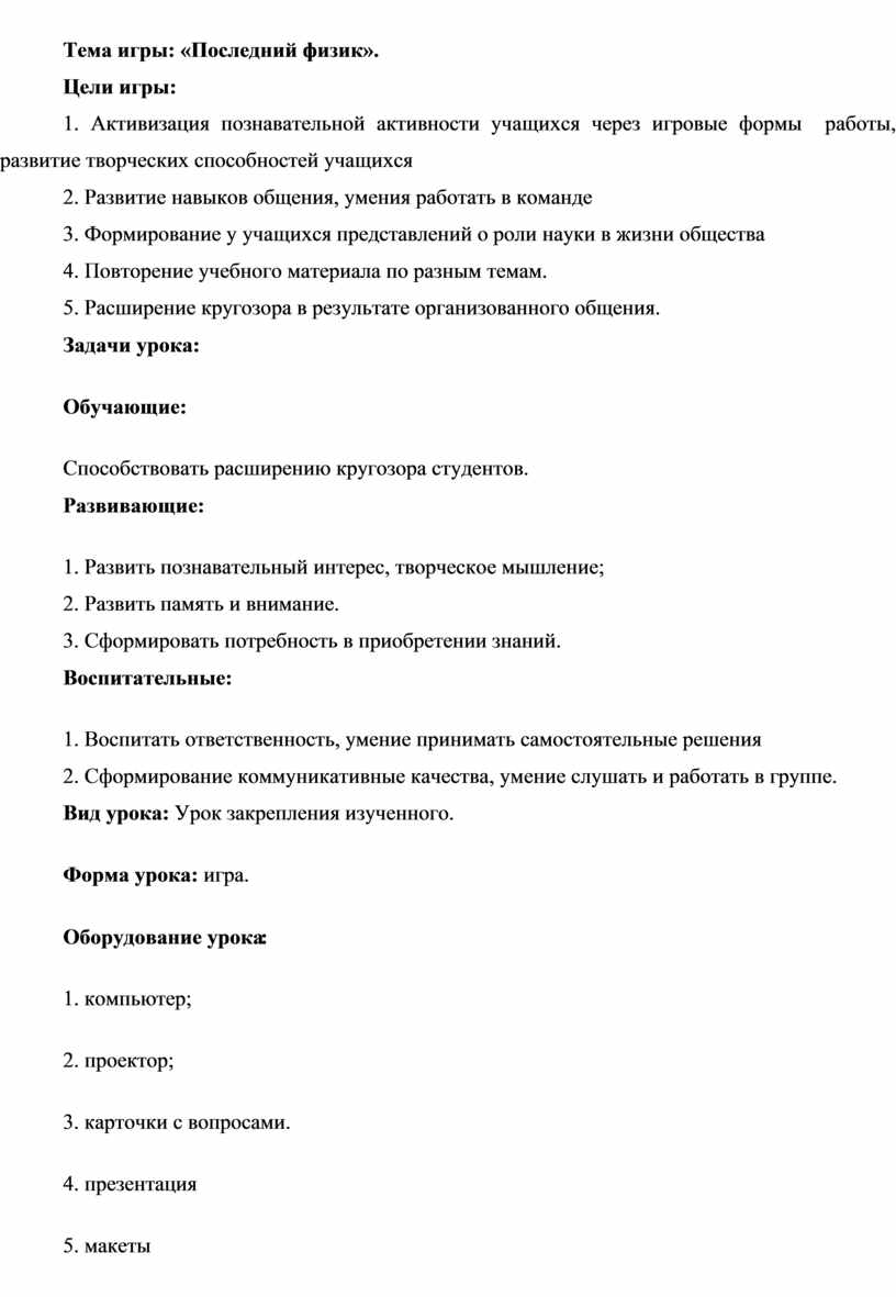 Методическая разработка предназначена для преподавателей физики и общеобразовательных дисциплин.