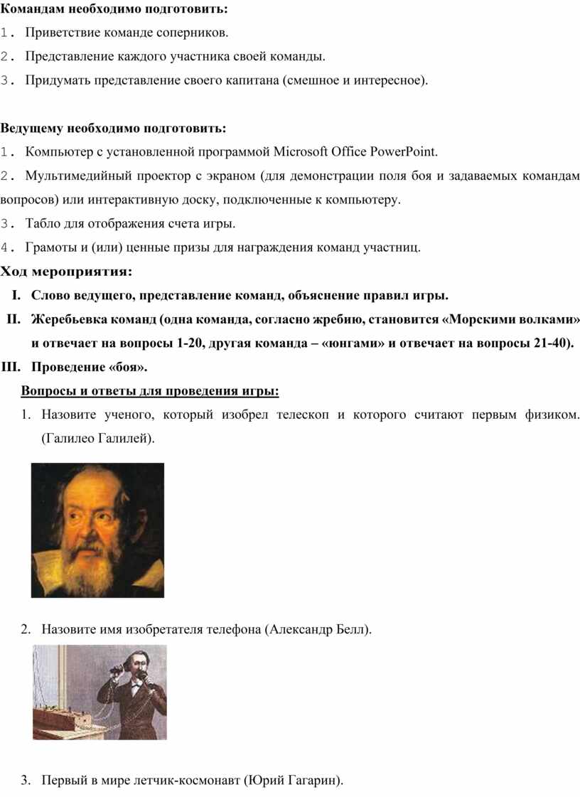 II. Жеребьевка команд (одна команда, согласно жребию, становится «Морскими волками» и отвечает на вопросы 1-20, другая команда – «юнгами» и отвечает на вопросы 21-40).