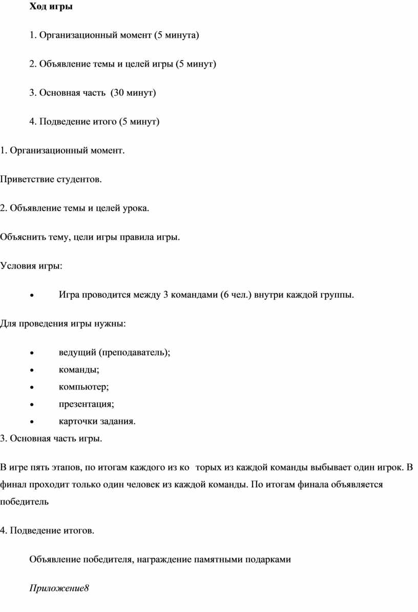 В ходе предлагаемой игры одни студенты демонстрируют свои знания, а другие, общаясь с ними, эти знания приобретают. Передача знаний осуществляется в интересной и доступной для всех форме.