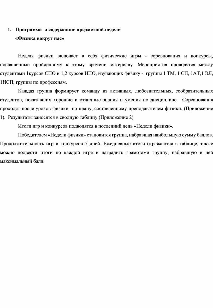 7. Программа и содержание предметной недели «Физика вокруг нас» 13