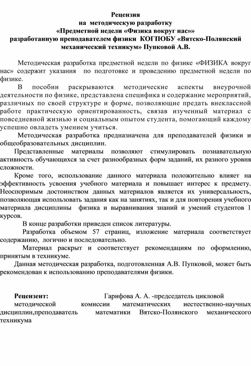 Автор методической разработки «Предметной недели «Физика вокруг нас»» преподаватель физики Пупкова.А.В. г. Вятские Поляны КОГПОБУ «Вятско – Полянский механический техникум» 2020г., стр. 57