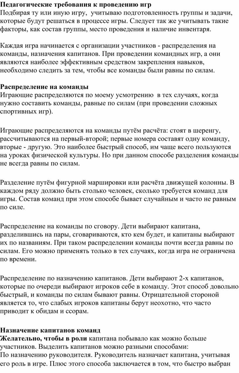 Педагогические требования к проведению игр