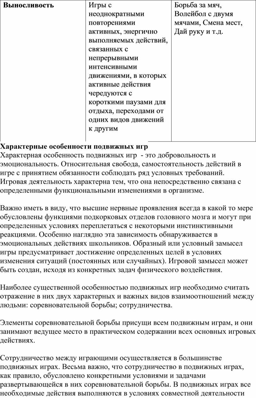 Наиболее существенной особенностью подвижных игр необходимо считать отражение в них двух характерных и важных видов взаимоотношений между людьми: соревновательной борьбы; сотрудничества.