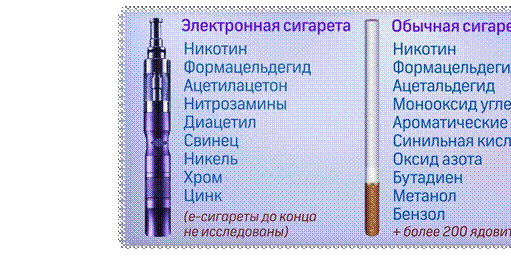 В состав электронной сигареты входит никотин, который является ядом для организма независимо от того, попадает ли он туда из обычной или электронной сигареты, и никотиновая зависимость в этом случае не становится меньше.