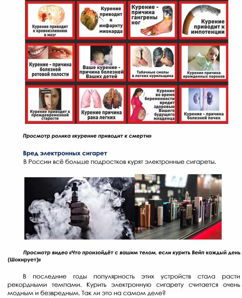 • социальные ролики на тему «Вред электронных сигарет на здоровье»,
