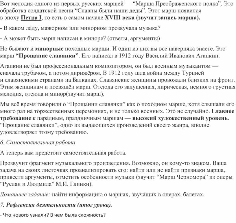 Домашнее задание: найти информацию о маршах, звучащих в операх, балетах.