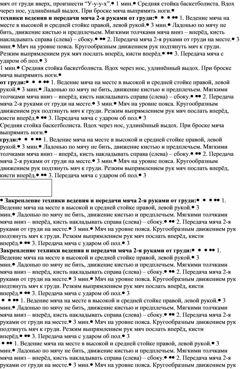4. Ведение мяча на месте с последующей передачей 2-я руками от груди. |