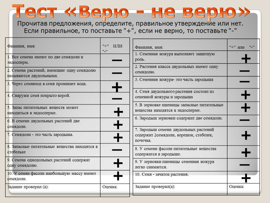 Тест «Верю - не верю»