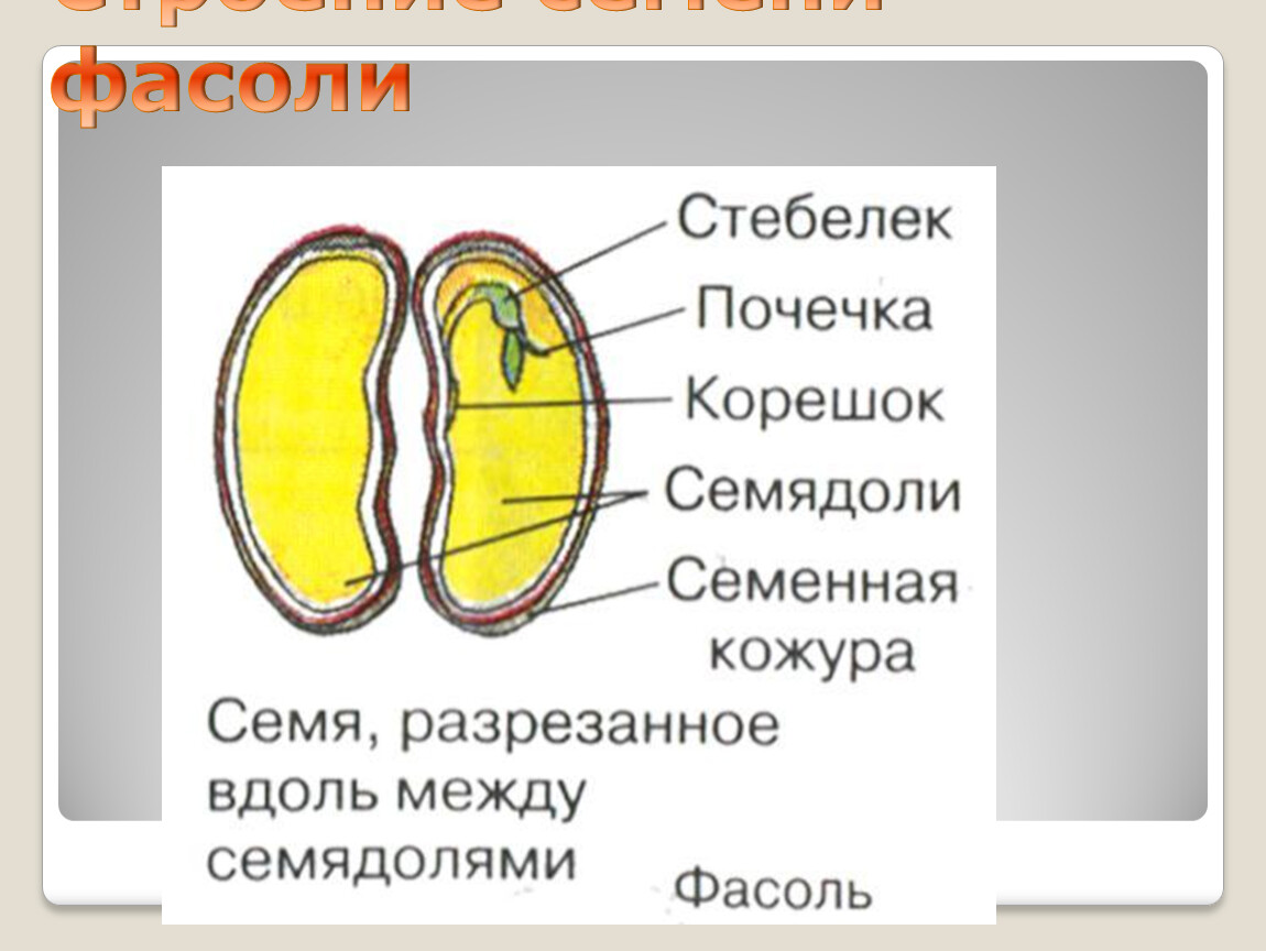 10. У семян фасоли наибольшую массу имеют семядоли. | |