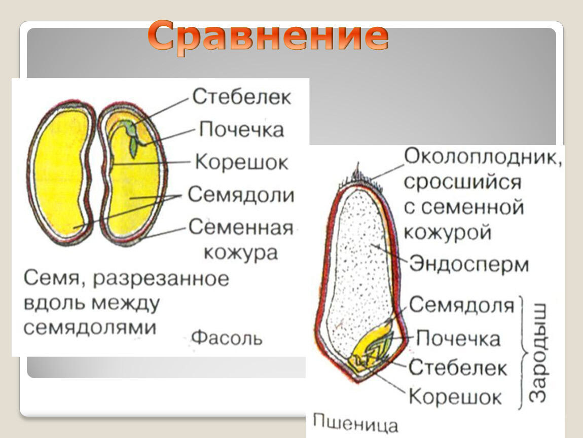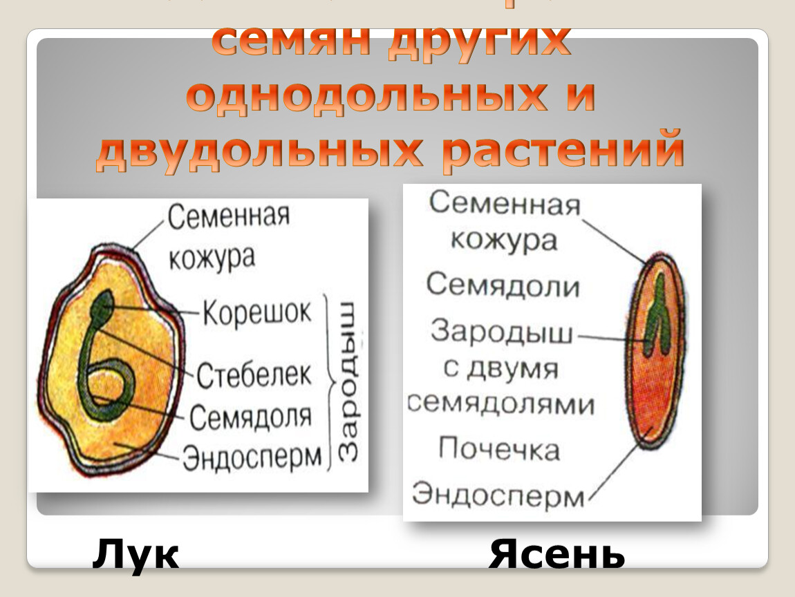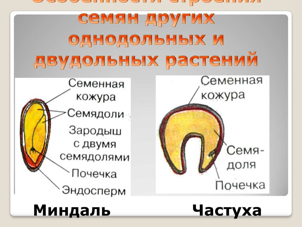 Раскрыть особенности строения семян однодольных и двудольных растений.
