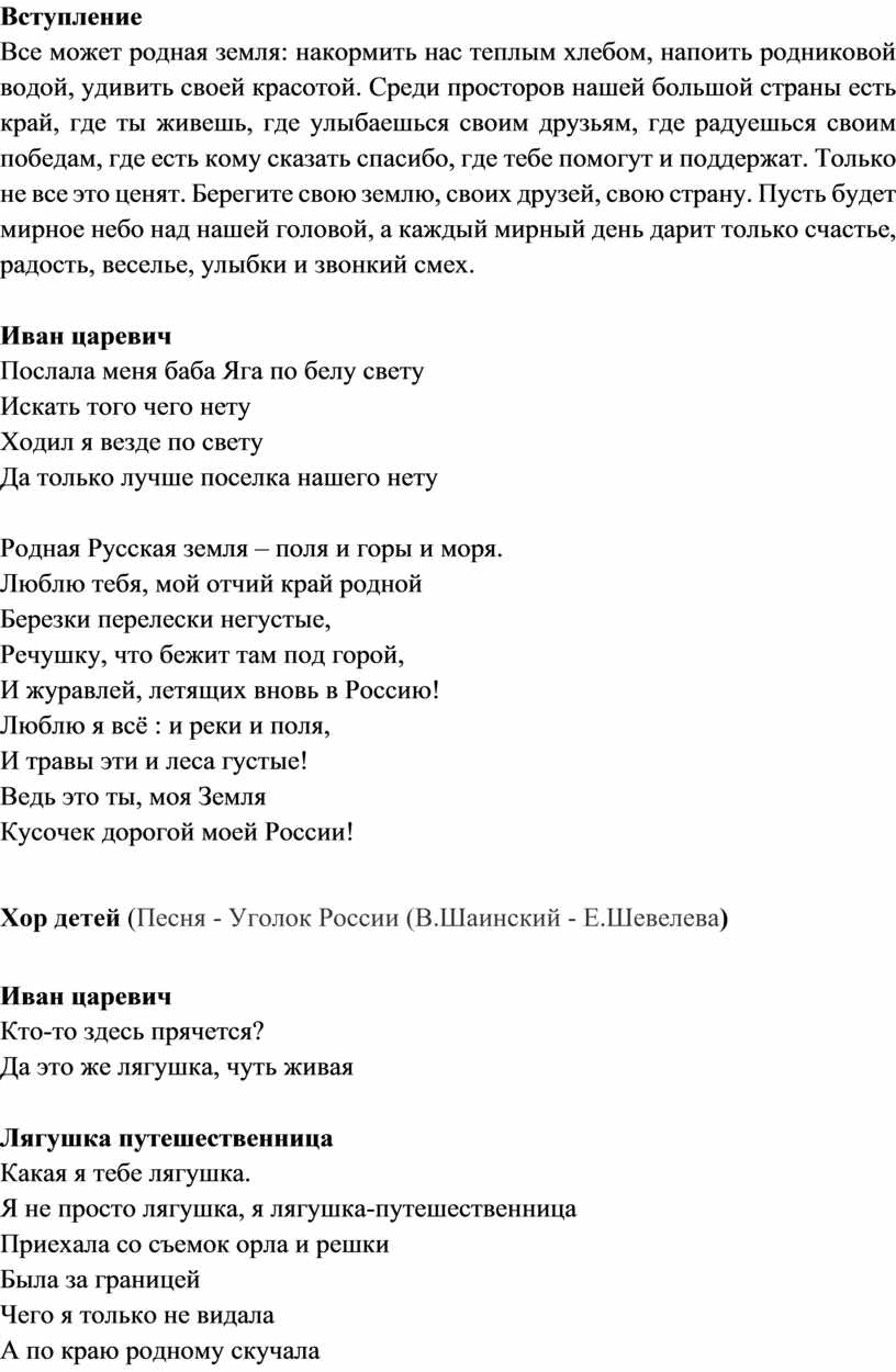 Все может родная земля: накормить нас теплым хлебом, напоить родниковой водой, удивить своей красотой. Среди просторов нашей большой страны есть край, где ты живешь, где улыбаешься своим друзьям, где радуешься своим победам, где есть кому сказать спасибо, где тебе помогут и поддержат. Только не все это ценят. Берегите свою землю, своих друзей, свою страну. Пусть будет мирное небо над нашей головой, а каждый мирный день дарит только счастье, радость, веселье, улыбки и звонкий смех.