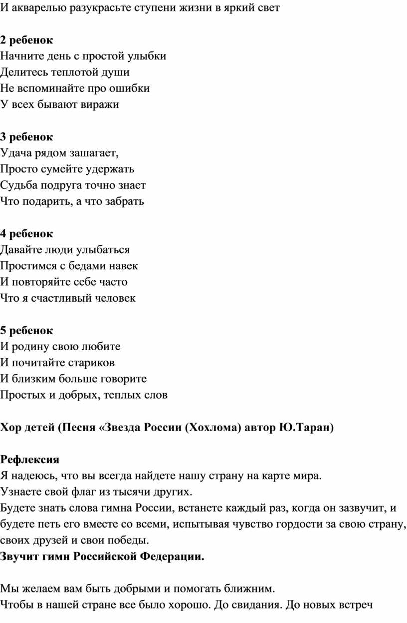 Хор детей (Песня «Звезда России (Хохлома) автор Ю.Таран)